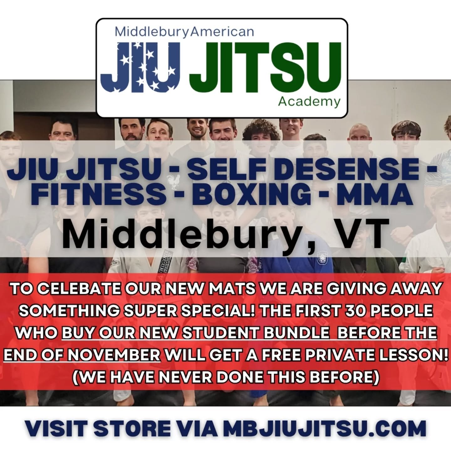 👉[Try it today for just $30] and discover why Middlebury American Jiu Jitsu Academy is Vermont’s choice for Jiu Jitsu, Boxing, Muay Thai and MMA.