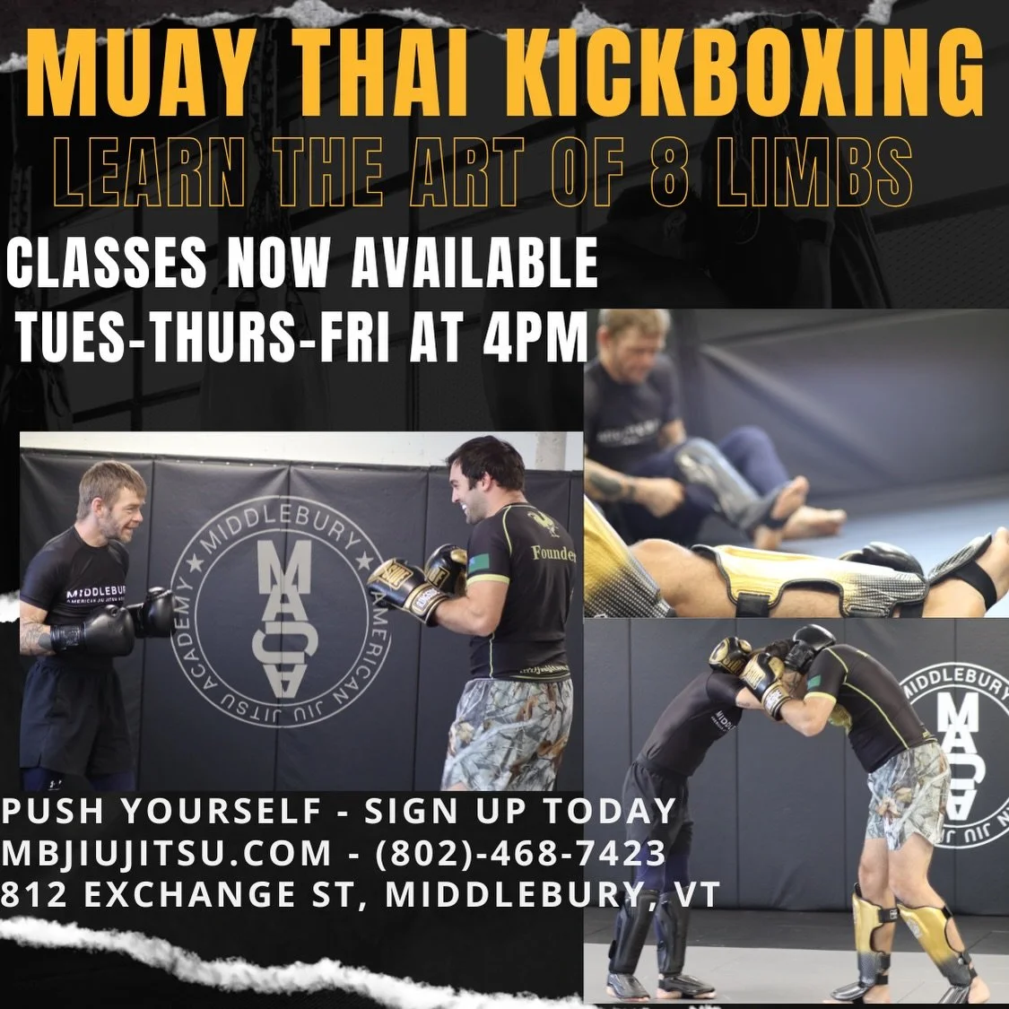 Whether you want to learn real self-defense, get in great shape, or work toward becoming an MMA fighter, Middlebury American Jiu Jitsu Academy is here to help you grow, train hard, and succeed.